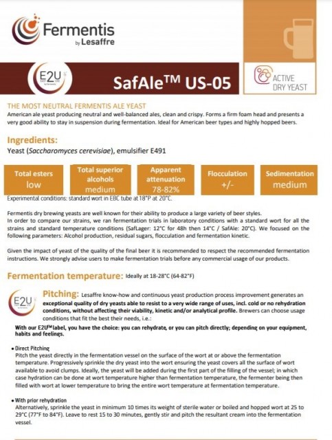 SafAle US-05 Amerikansk ale gjær som produserer nøytrale, velbalanserte, rene og krispy øl. Danner et fast skumhode og presenterer en veldig god evne til å holde seg i suspensjon under gjæring. Ideell for amerikanske øltyper og humlesterke øl. PrisNOK49,00 inkl. mva. Utsolgt Ønskeliste Del dette Produktinfo Produktanmeldelser (0) Link til datablad Skriv en produktanmeldelse og del dine erfaringer med dette produktet med andre kunder. Email Navn Din vurdering? 1 star 2 star 3 star 4 star 5 star 6 star Oppgi en tittel for anmeldelsen din Skriv inn produktanmeldelsen i feltet under